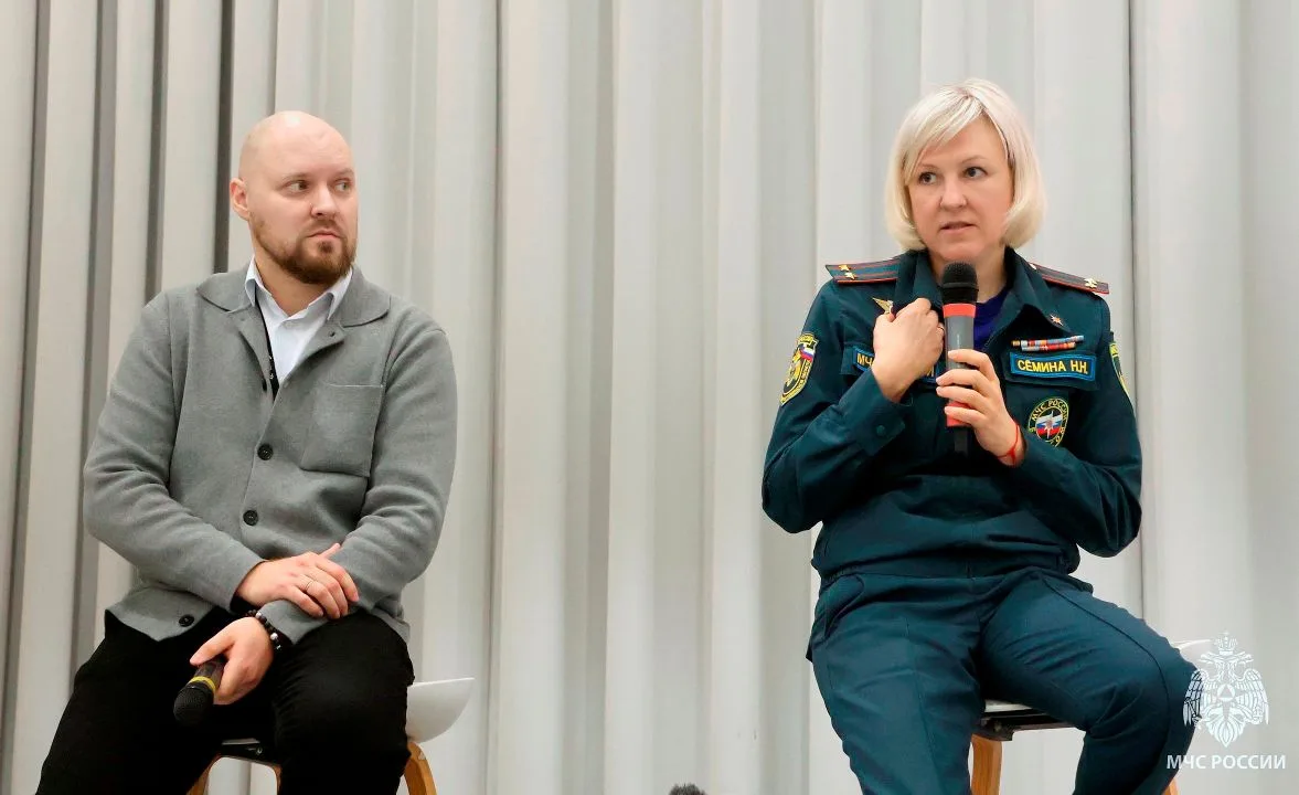 Руководитель пресс-службы Главного управления МЧС России по Тюменской области - Наталья Сёмина и журналист телеканала "Тюменское время" - Игорь Жариков рассказали кадетам, что сотрудник ведомства должен не только тушить пожары и ликвидировать ЧС, но и грамотно доносить информацию. Умение четко и без паники рассказать о ситуации с места событий — такой же навык, как работа с пожарно-техническим вооружением.
