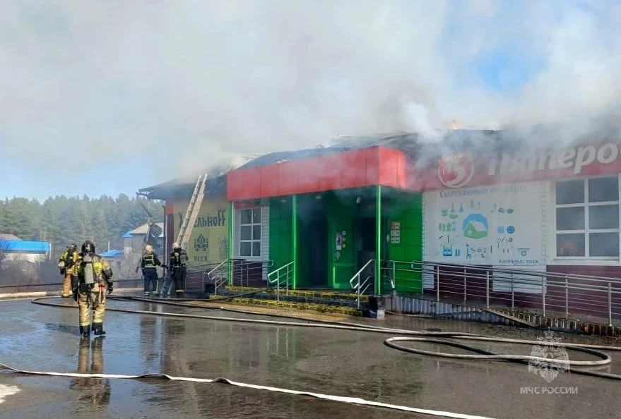 Сотрудники МЧС России ликвидируют пожар в селе Тюнево