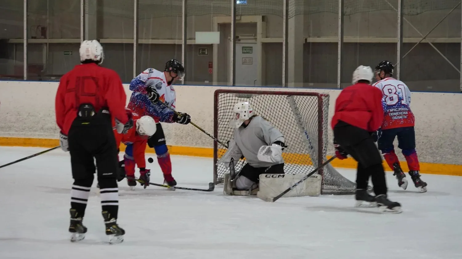 Сегодня в областной столице состоялось яркое спортивное событие: на льду хоккейного комплекса «Прогресс» встретились сборная Лиги дворового спорта России и команда Главного управления МЧС России по Тюменской области.