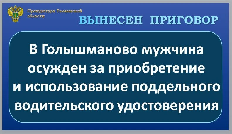 Голышмановский районный суд вынес приговор по уголовному делу и признал 34-летнего жителя виновным по ч. 3 ст.327 УК РФ (приобретение и использование заведомо поддельного удостоверения, предоставляющего права).