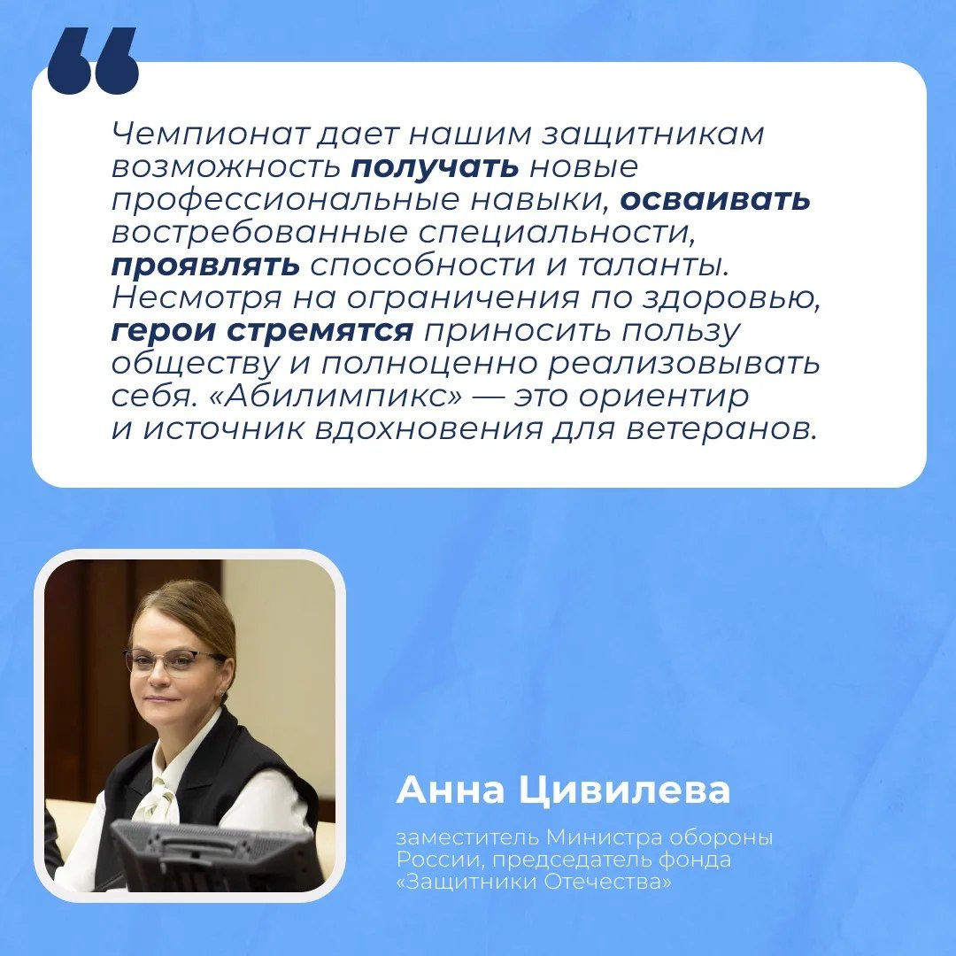 По всей стране проходят соревнования по профессиональному мастерству «Абилимпикс» для людей с инвалидностью и ОВЗ. В числе участников — ветераны спецоперации, которые уже подали более 800 заявок по различным направлениям в категории «специалисты».