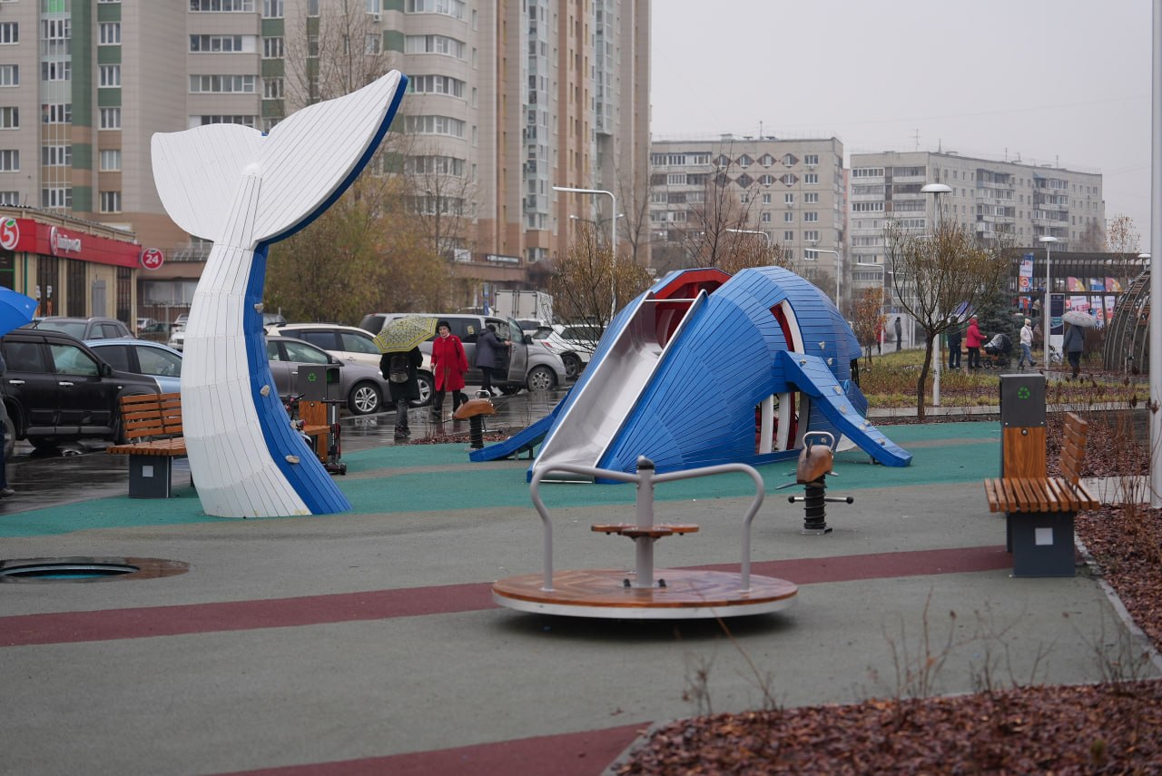 - Через весь бульвар мы постарались провести нить творчества Ершова: входная арка выполнена в виде головы кита, есть туловище и хвост. В виде этого животного сделана и детская площадка, представлены другие элементы знаменитой сказки Петра Ершова «Конёк-Горбунок», – рассказал Евгений Александрович.
