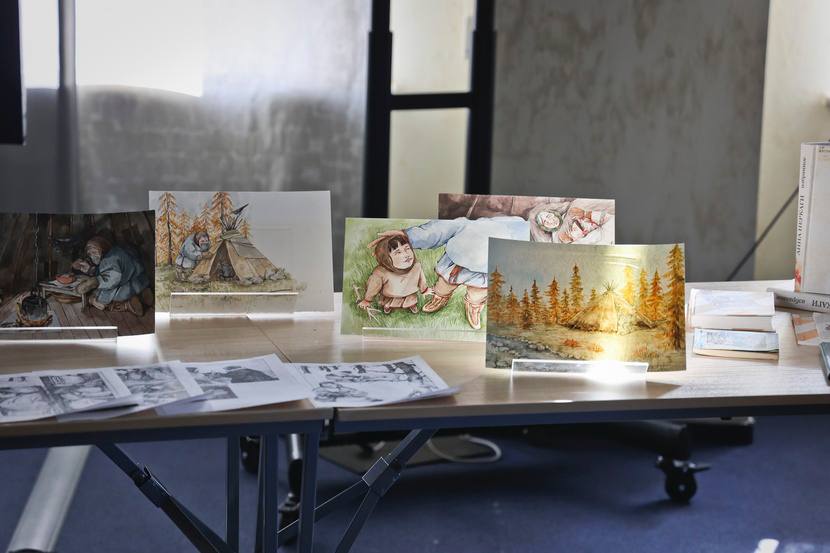 В читальном зале областной научной библиотеки состоялась встреча с автором оформления и иллюстраций к книгам ненецкой писательницы Анны Неркаги — художницей Полиной Сайфуллиной