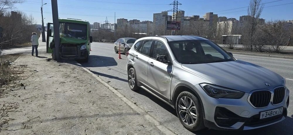 Маршрутка влетела в столб сегодня в Тюмени. ДТП произошло сегодня около 11-ти часов дня