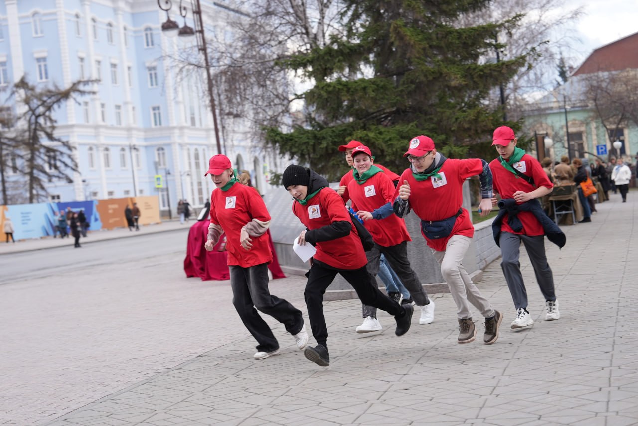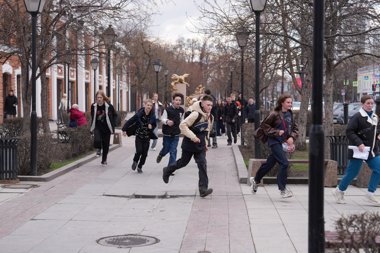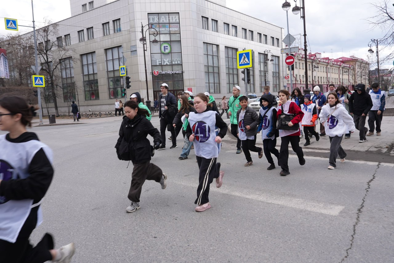 По 5-километровому маршруту, пролегающему по центру города, одновременно и динамично передвигались 50 команд семиклассников и три команды директоров, молодых педагогов и наставников.