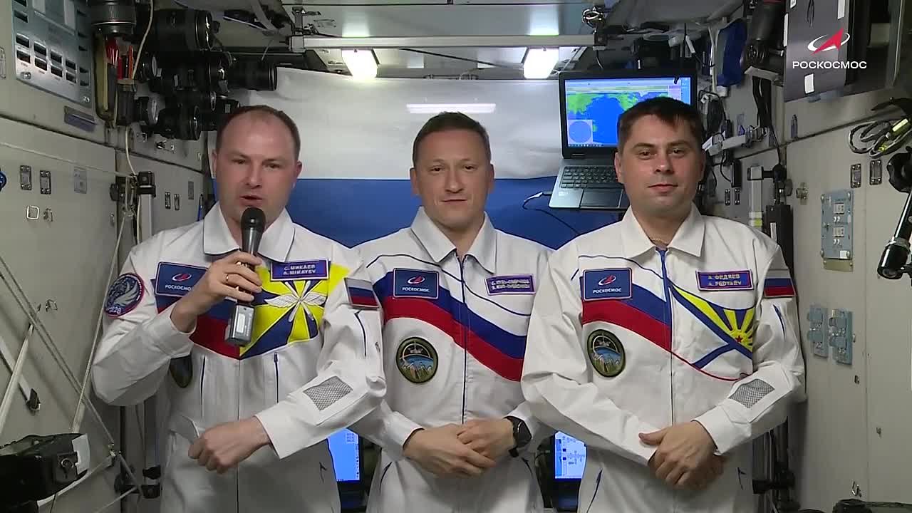 Вчера, находясь на борту Международной космической станции, космонавты Сергей КудьСверчков, Андрей Федяев и Сергей Микаев обратились к россиянам с праздничными словами
