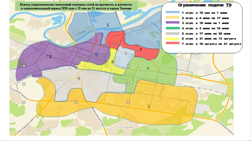 Первый этап испытаний трубопроводов на прочность и плотность пройдет с 19 мая по 1 июня. Он затронет объекты, расположенные в Европейском микрорайоне, в ж.р. Тура, в Заречных микрорайонах, а также в районах улиц Одесской, Дамбовской, Максима Горького, 50 лет Октября и Мельникайте (нечетная сторона), от улицы 50 лет Октября до улицы Республики.