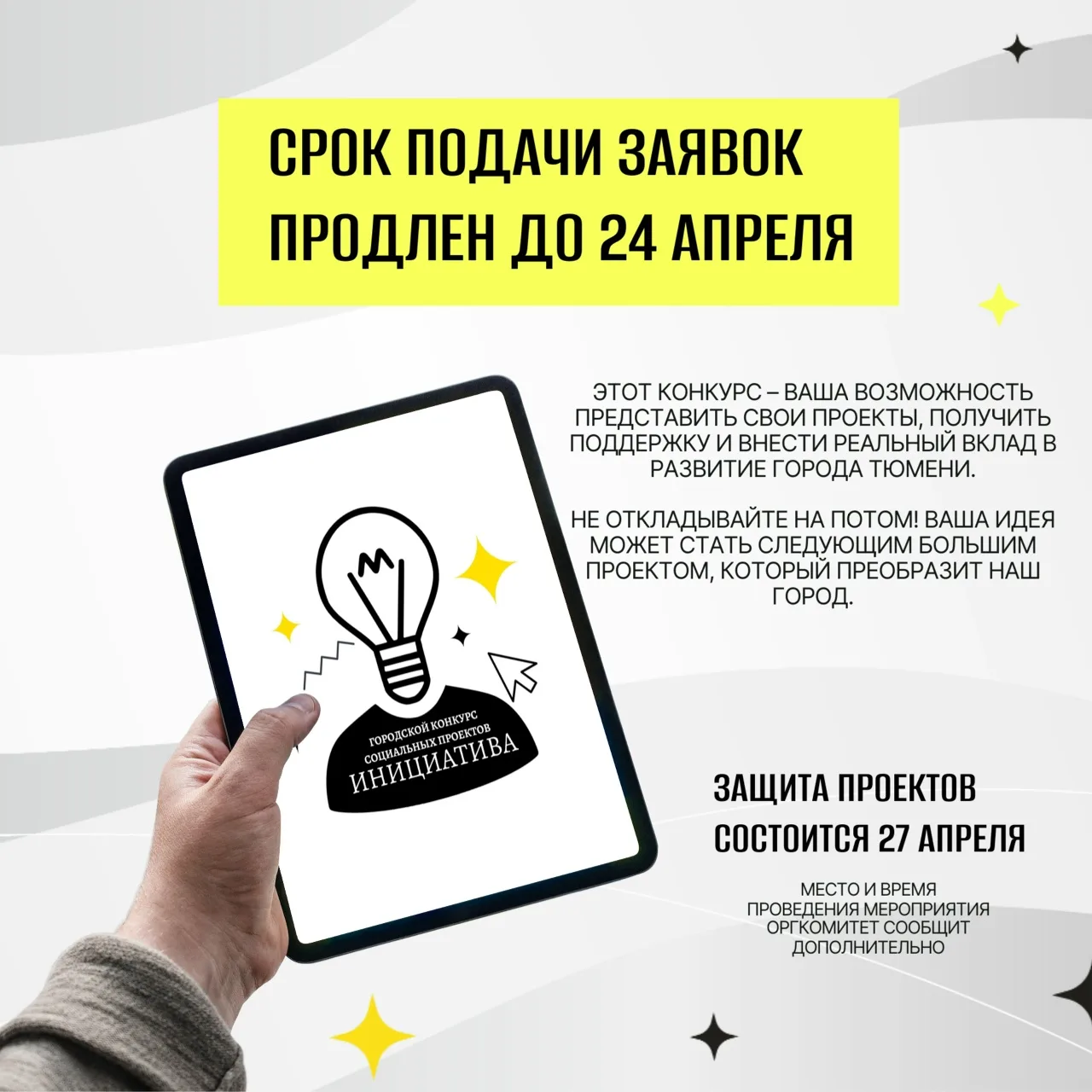 В областной столице продлен прием заявок на конкурс проектов «Инициатива», участники которого смогут не только рассказать о своих идеях, но и получить финансирование, чтобы реализовать свой социально-значимый проект в жизнь.