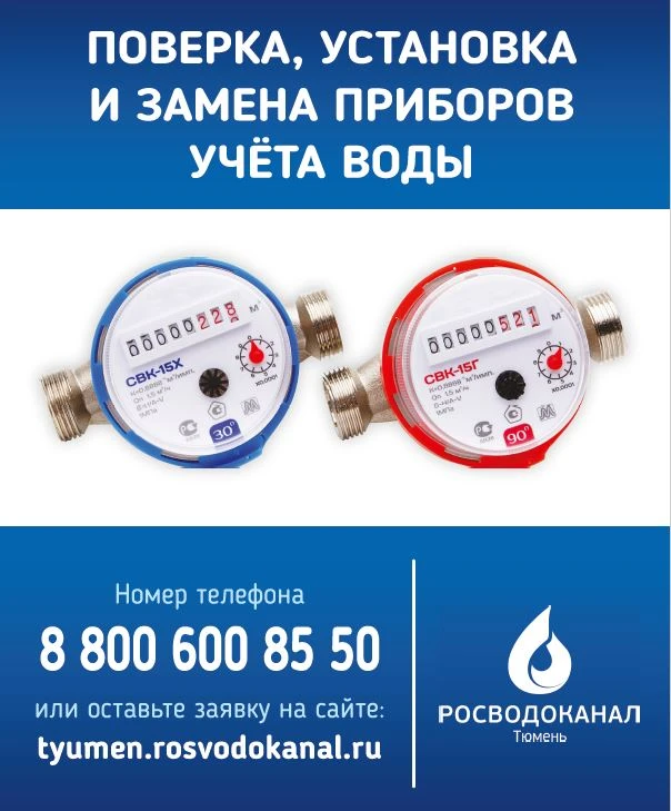 Подать заявку на поверку приборов учета жители могут по телефону горячей линии 8-800-600-85-50, на сайте «Росводоканала Тюмень» или через чат-бот в Мах.