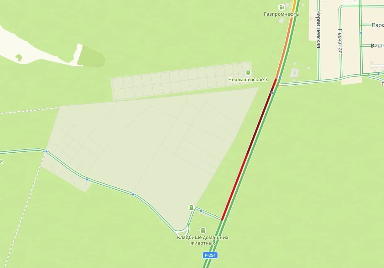 В частности, затор набюдается в сторону Червишевского кладбищ.