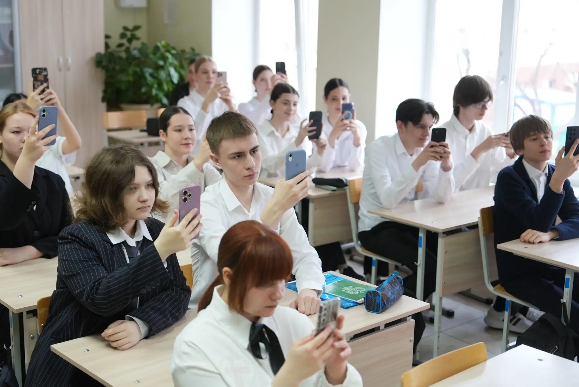 Уважаемые родители детей из 9А школы № 25, сидеть в телефоне разрешили именно им, да ещё и во время урока. Но! Не переживайте! Всё для дела!