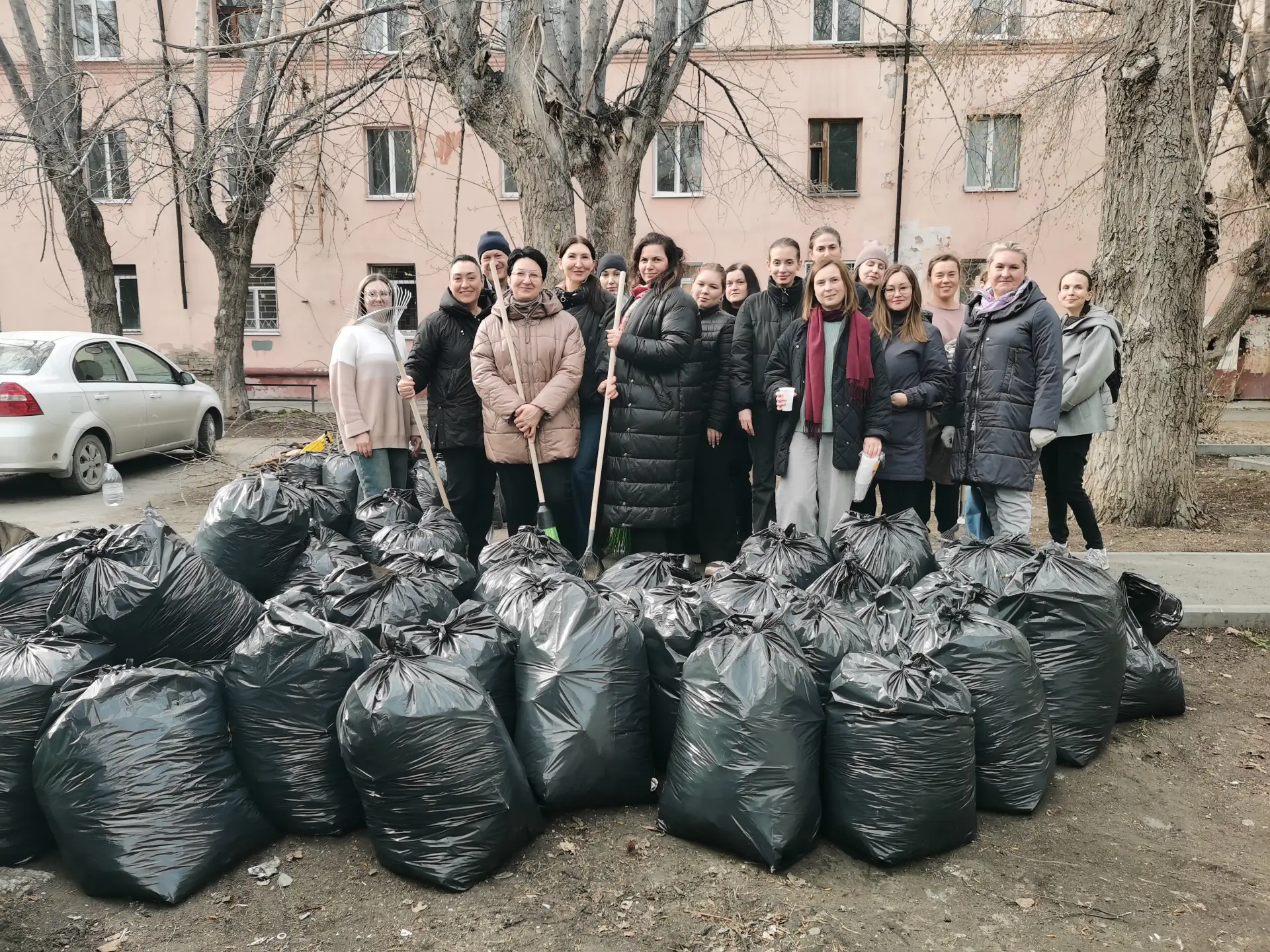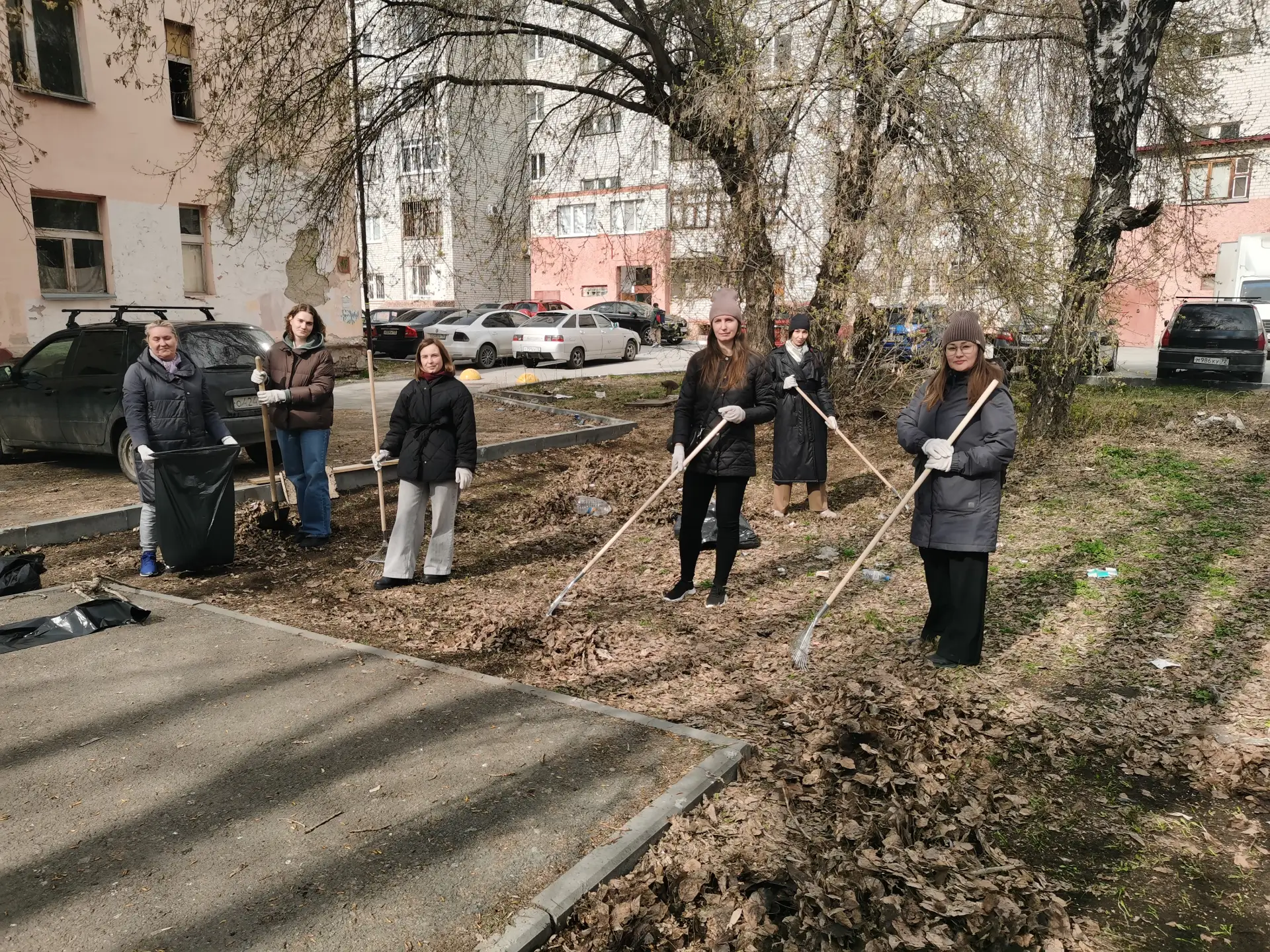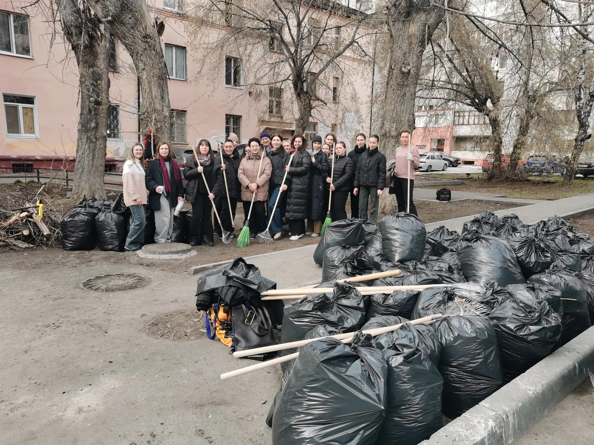 Вооружившись граблями, мётлами, мешками, перчатками и отличным настроением, привели в порядок озелененную территорию жилого дома по ул. Индустриальной, 47, собрав 80 мешков мусора.