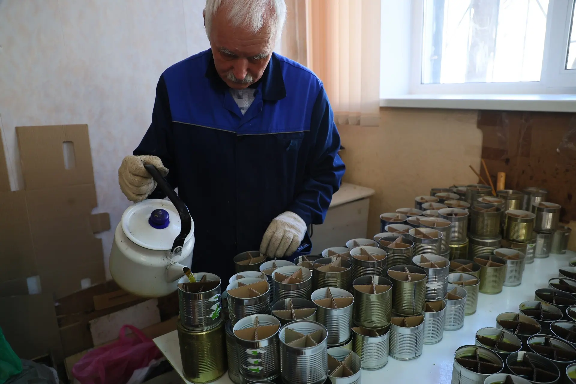 Куратор волонтёрского центра Анастасия Шумилова рассказала про основные направления деятельности: плетение маскировочных и антидроновых сетей, изготовление окопных свечей, пошив нижнего белья и бандажей для госпиталей и, самое главное, сборы по заявкам участников специальной военной операции.