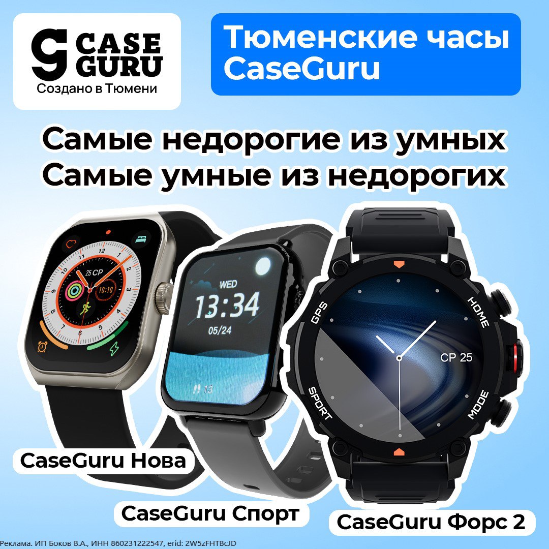 Тюменские часы CaseGuru Спорт — с дисплеем крупнее аналогов и В РАЗЫ надёжнее ноунеймов. Корпус из ударопрочного полимера, лёгкие и комфортные при ношении. Держат связь со смартфоном на рекордном расстоянии до 50 метров!