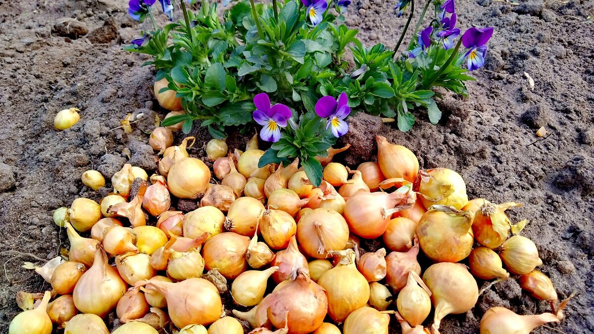 Сажать лук следует в хорошо прогретую почву (выше +12 градусов). Оптимальное время – через неделю после цветения черёмухи или яблони, когда почва на глубине 50 см прогреется до 10 градусов. Перед посадкой рекомендуется замочить севок в тёплом розовом растворе марганцовки с вечера. Следует помнить, что вдавливать лук в почву нельзя; лучше использовать палку с разметкой, чтобы делать углубления через каждые 10 см в ряду и оставить место для прохода плоскореза.