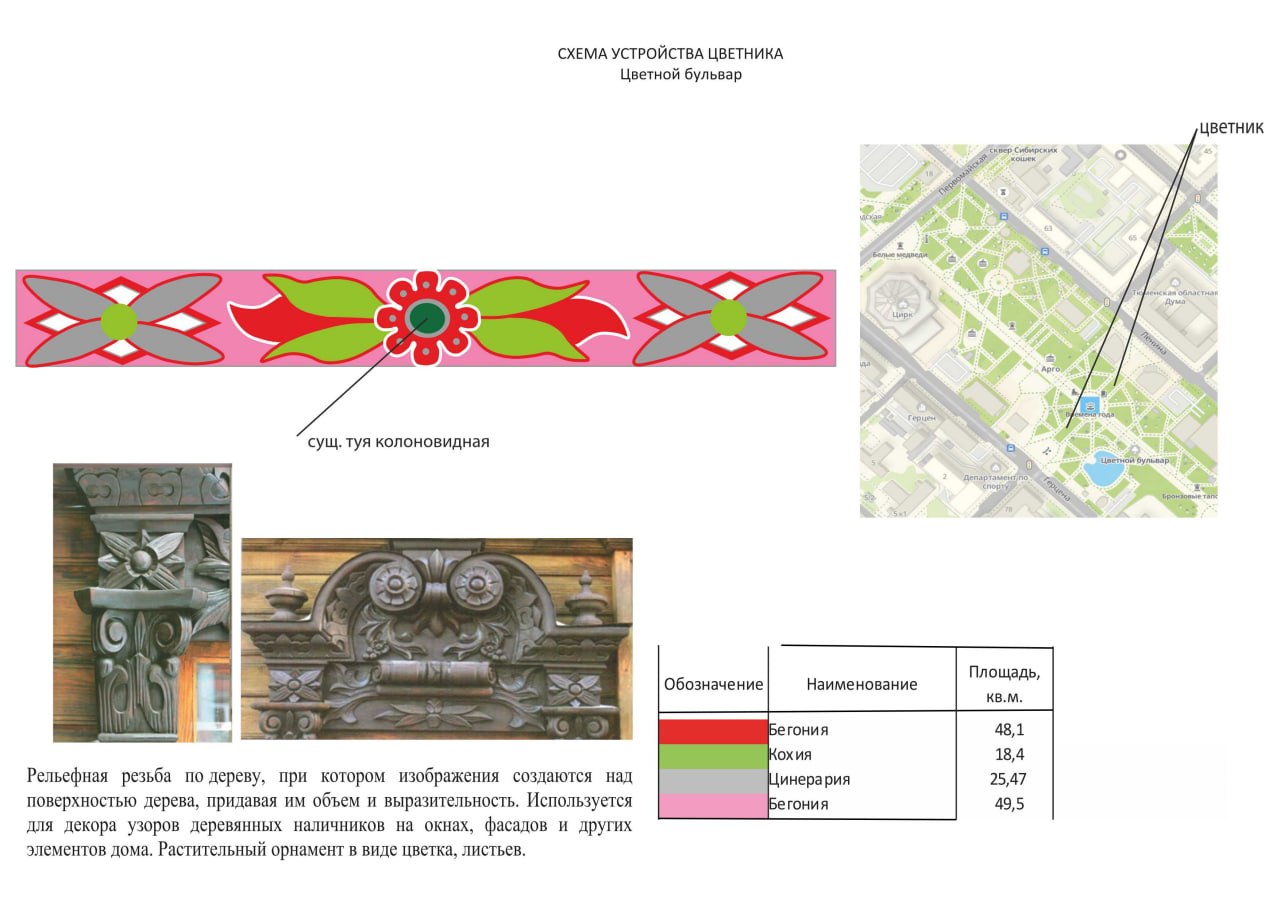 Специалисты по озеленению уже на старте. Пока весна вступает в свои права, они вовсю заняты разработкой концепции будущего цветочного наполнения и вдохновение черпают в тюменском зодчестве, а точнее, в знаменитой домовой резьбе.