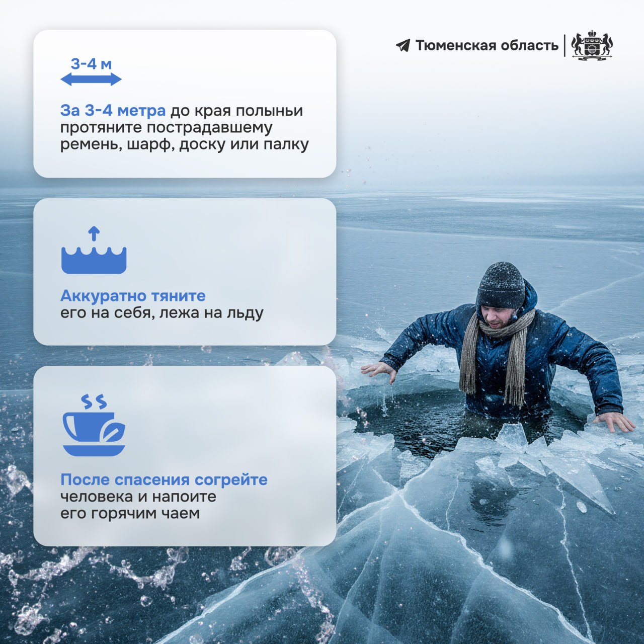 С начала декабря 2025 года в Тюменской области произошло 3 случая, когда люди и техника проваливались под лед. Один человек погиб, а другого удалось спасти.