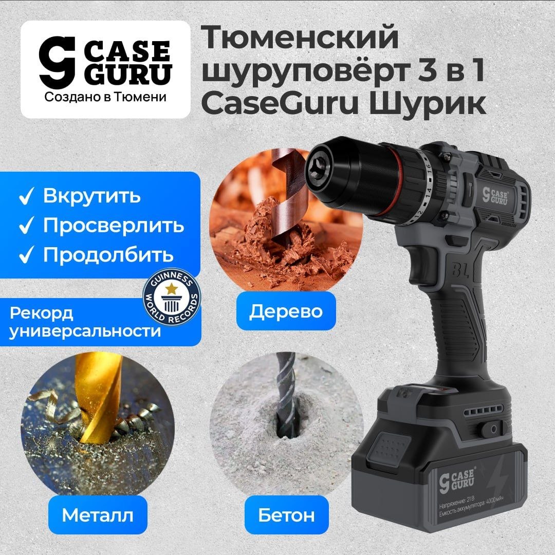 Тюменский универсальный инструмент CaseGuru Шурик 3 в 1 — шуруповёрт с функциями дрели и перфоратора!