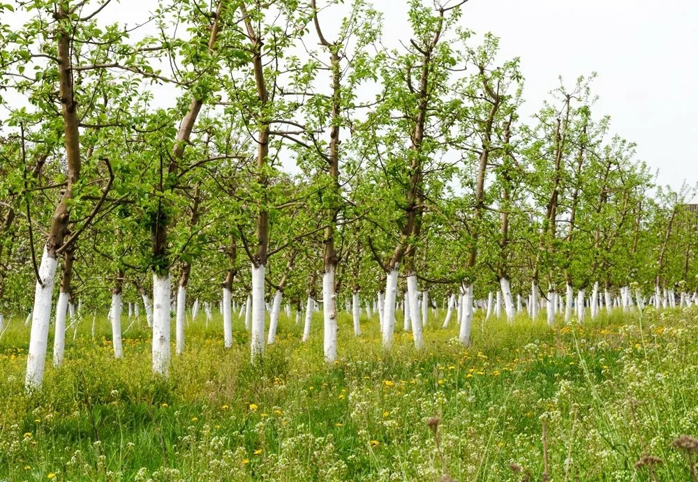 - Возраст деревьев: Идеально белить только молодые деревья, начиная с трехлетнего возраста. Кора старых деревьев сама по себе достаточна для защиты.