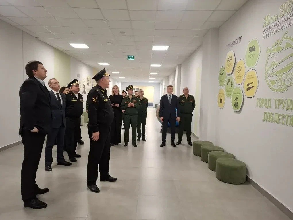 Заместитель начальника Главного организационно-мобилизационного управления Генштаба Вооруженных сил РФ вице-адмирал Владимир Цимлянский в составе комиссии посетил поликлинику, гимназию и центр «Аванпост».