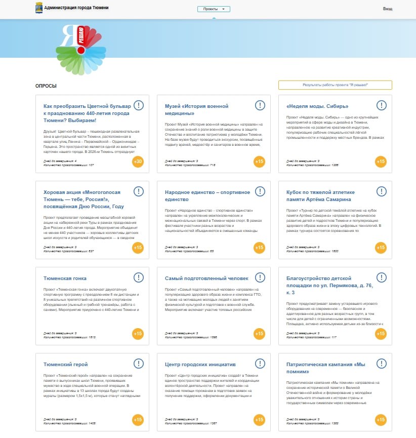 Ознакомьтесь с предложенными идеями на портале «Я решаю!» https://dom.tyumen-city.ru/ir/ и поддержите те, что кажутся вам наиболее важными и перспективными. Проголосовать можно до 29 марта.