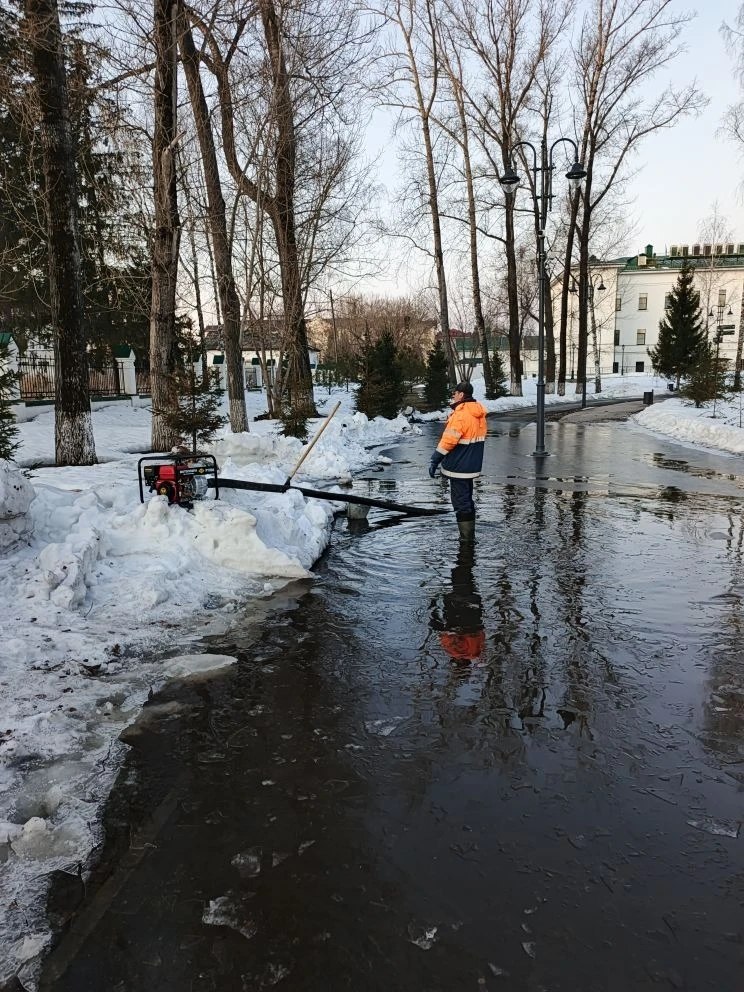 На территории города продолжается плановый мониторинг подтопляемых участков. Специалисты подрядной организации ежедневно проверяют уровень воды и при необходимости оперативно подключают технику для откачки.