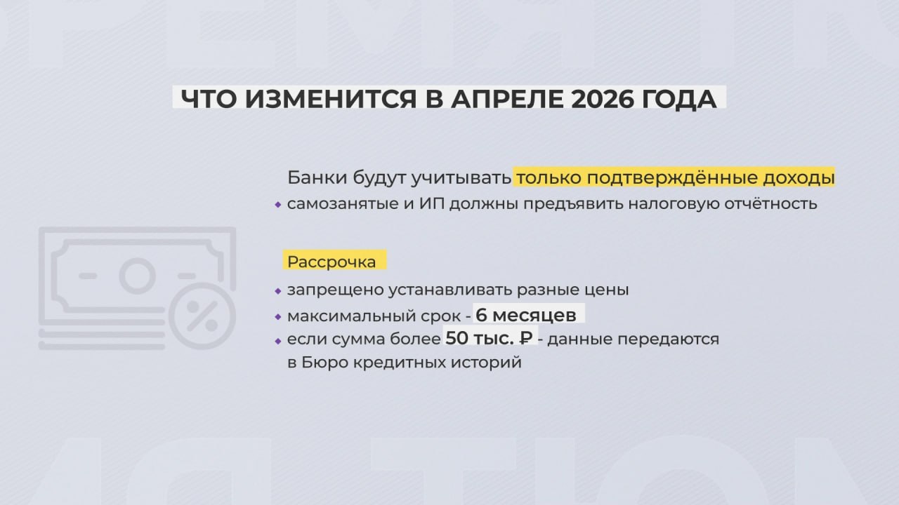 - С 1 апреля банки обязаны учитывать только официально подтверждённые доходы. Самозанятым и ИП теперь не получится подтвердить платёжеспособность справкой "самому себе" - нужна налоговая отчётность.
