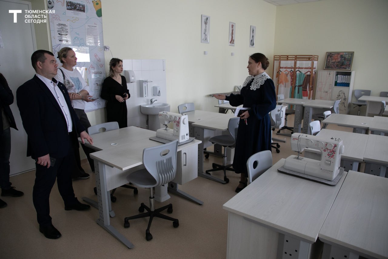 Члены народной комиссии побывали в школе № 56 Тюмени. Площадь здания — 20 тысяч квадратных метров. Здесь есть три спортзала, сенсорная комната со звездным и солнечным небом, большая песочница, библиотека, напоминающая домик хоббита, шахматные столы и даже гончарная мастерская.