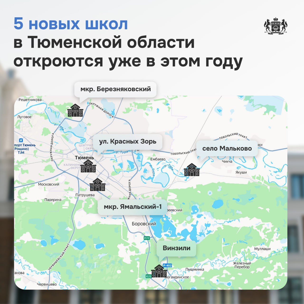 Откроют три школы — микрорайон Березняковский, улица Красных Зорь и Ямальский —1, а также в Винзилях и Мальково.