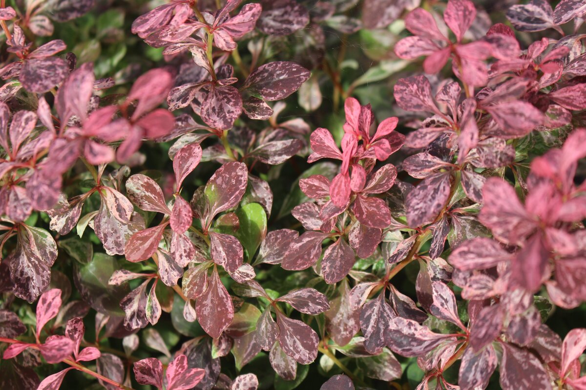Этот кустарник способен добавить необходимую цветовую акцентуацию в ландшафт благодаря своим ярким розовым листьям. Однако стоит отметить, что в момент распускания листвы цвет оставляет желать лучшего – серо-коричневая гамма не радует глаз. К счастью, со временем он восстанавливает привлекательный вид, и с середины июня кусты обретают свою яркость.