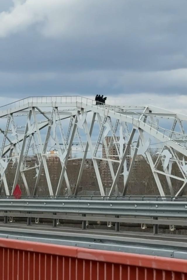 Группа подростков поднялась на вершина моста на улице Челюскинцев. Фото опасной прогулки разошлось в сети.