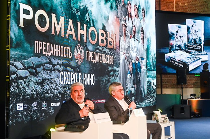 Гости увидели трейлер художественного фильма и познакомились с переизданием книги «Романовы: преданность и предательство» в кинообложке. Премьера картины запланирована на 2026 год при поддержке Первого канала.
