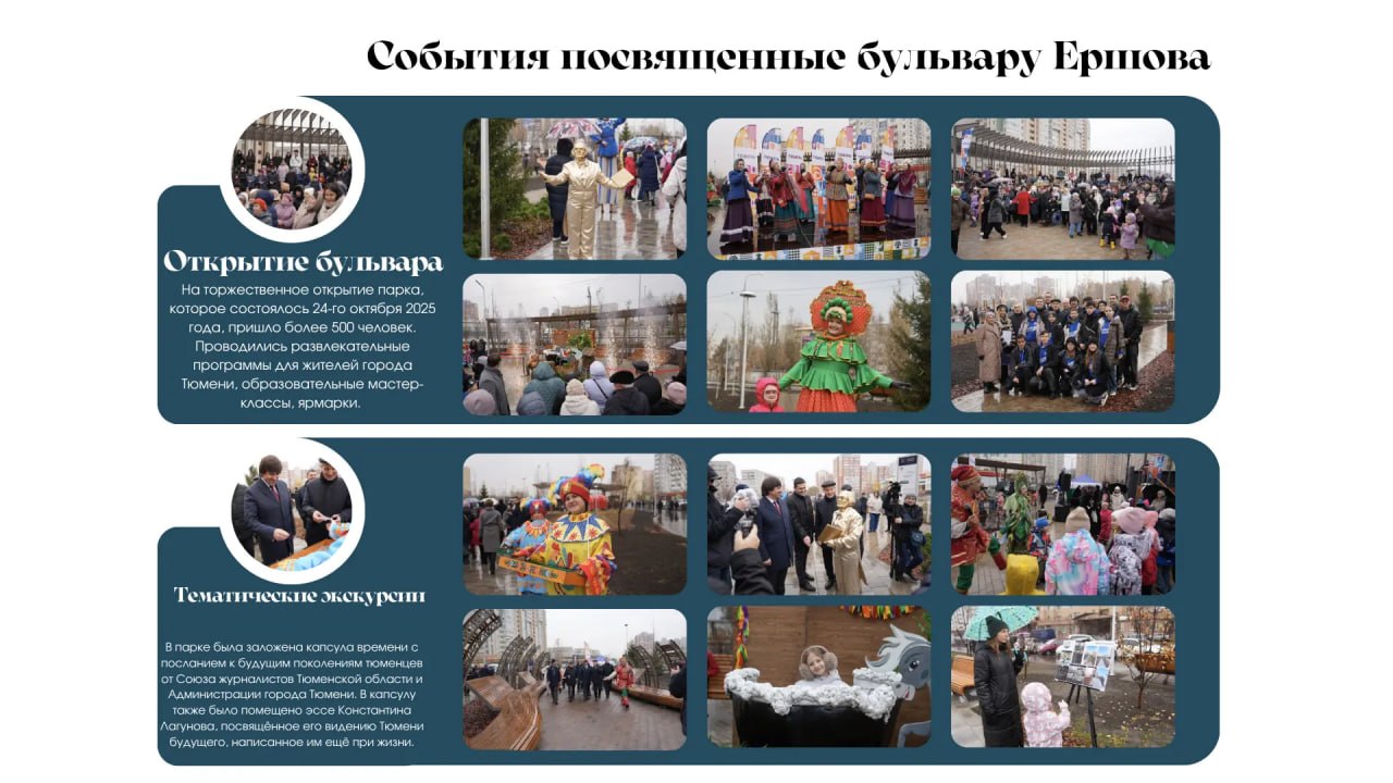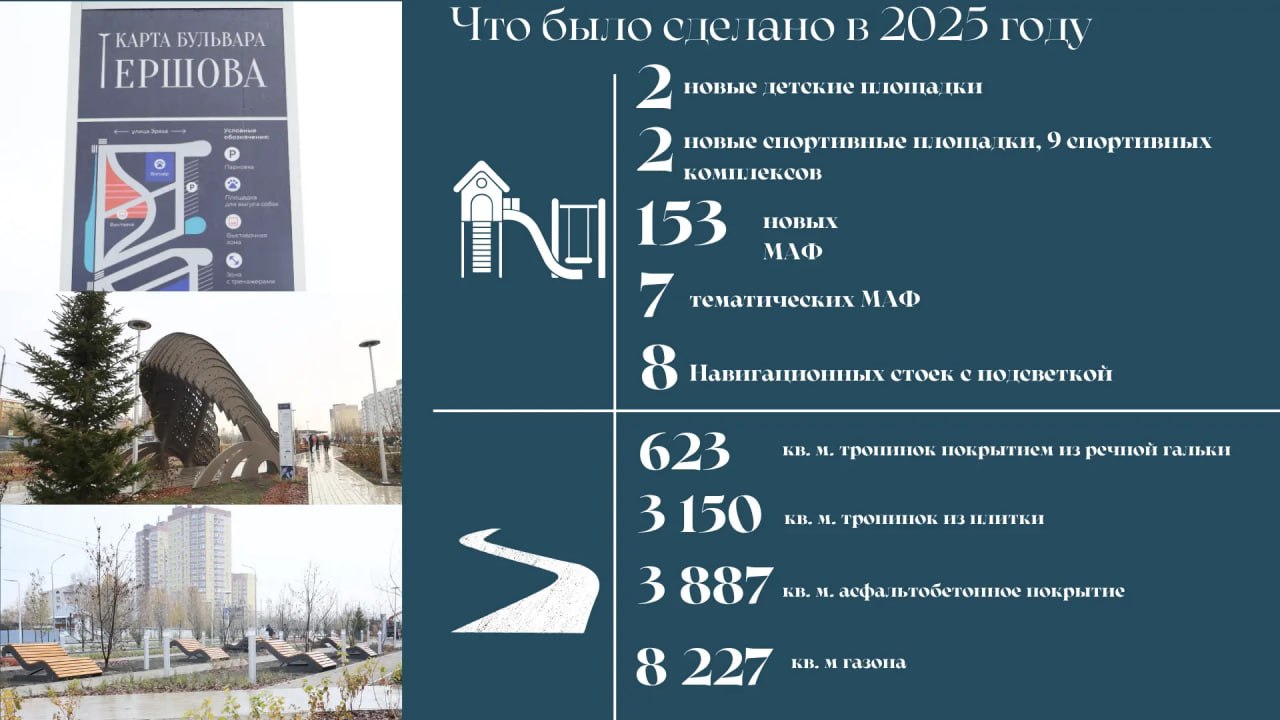 Бульвар Ершова, созданный в рамках национального проекта «Инфраструктура для жизни», стал финалистом III Всероссийской парковой премии «Парки России» в номинации «Премьера года. Реализованный проект парка в 2025 году» (города от 500 тыс. чел.).