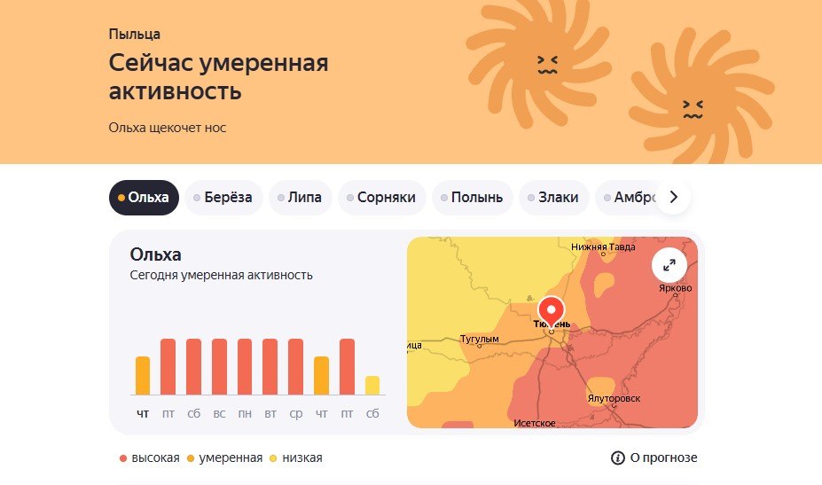 С 10 апреля в Тюмени ожидается всплеск активности пыльцы ольхи