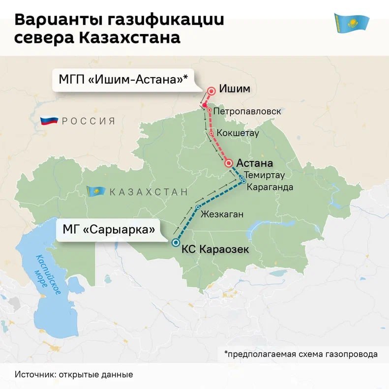 Казахстан может проложить новый газопровод через Россию. Это один из вариантов газификации севера республики, рассказал вице-министр РК Санжар Жаркешов.