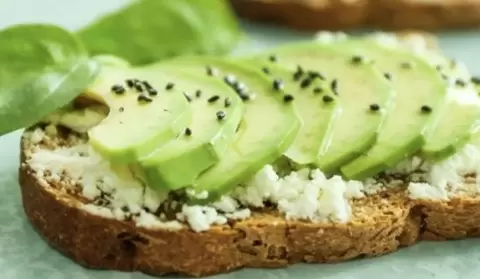- Цельнозерновой хлеб с нежирным сыром и ломтиком авокадо