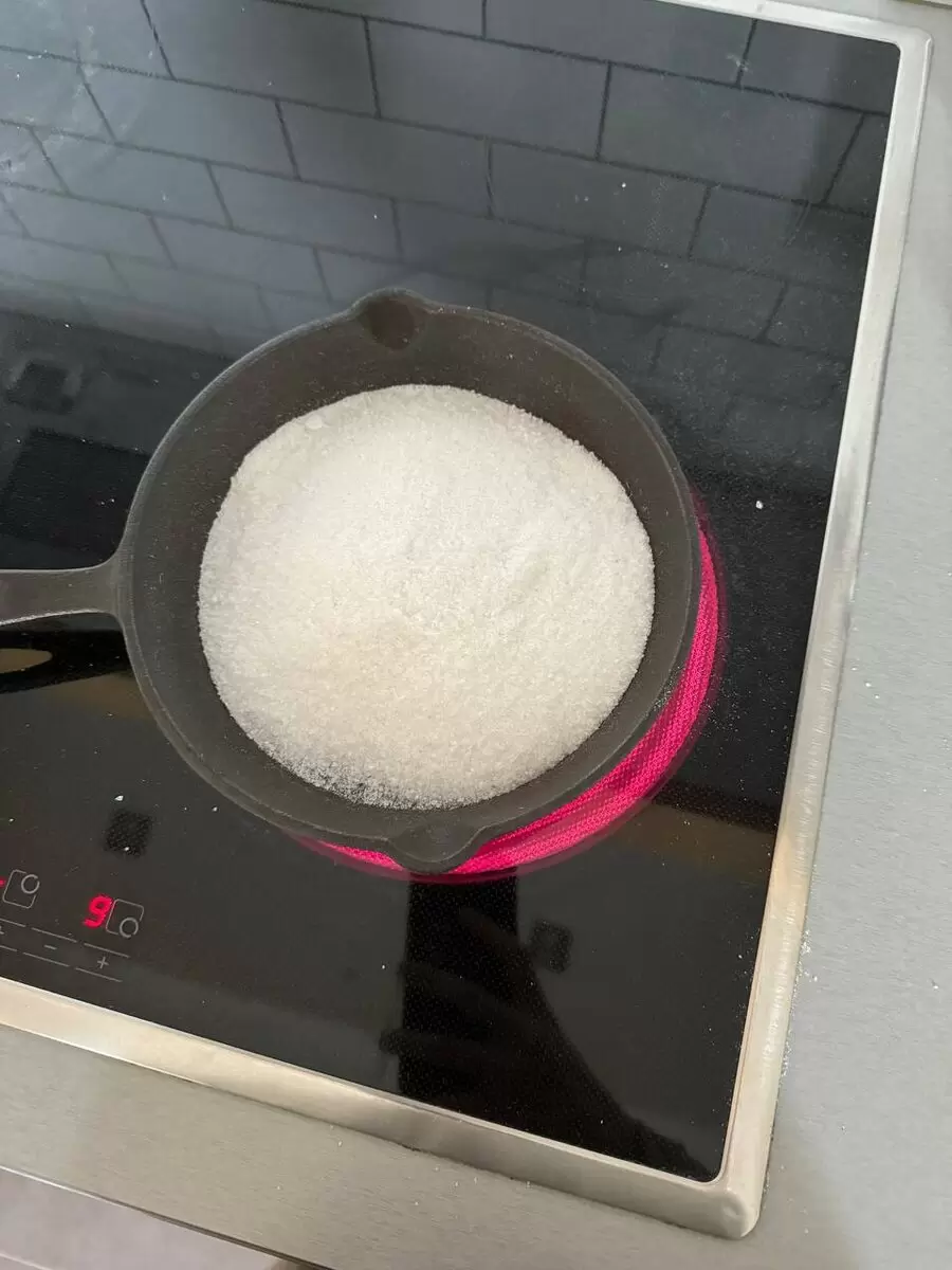 Откройте окна и включите вытяжку, чтобы улучшить вентиляцию. Регулярно перемешивайте насыпанные соль и соду, прокаливая чугун в течение 20-30 минут. Рекомендуется сделать это в два подхода: после первого прокаливания, дайте сковороде остыть, высыпьте соль и снова промойте. Затем повторите процедуру с прокаливанием.
