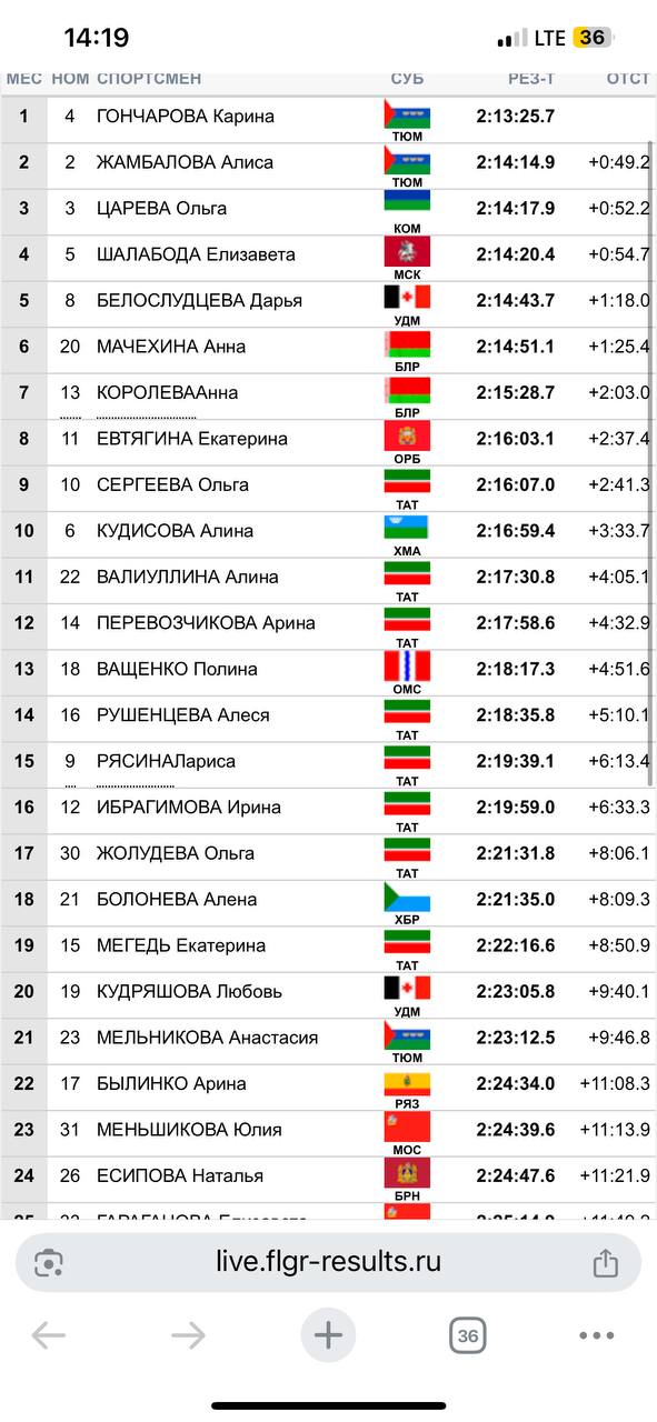 1 место - Карина Гончарова (Тюменская область) 2.13.25.7