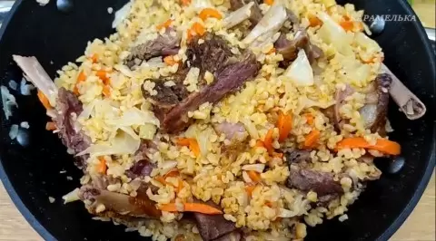 В этом блюде булгур впитывает ароматы и соки, создавая насыщенный вкус. Копчёные рёбра привносят незабываемую нотку, заставляя вас наслаждаться каждым укусом.