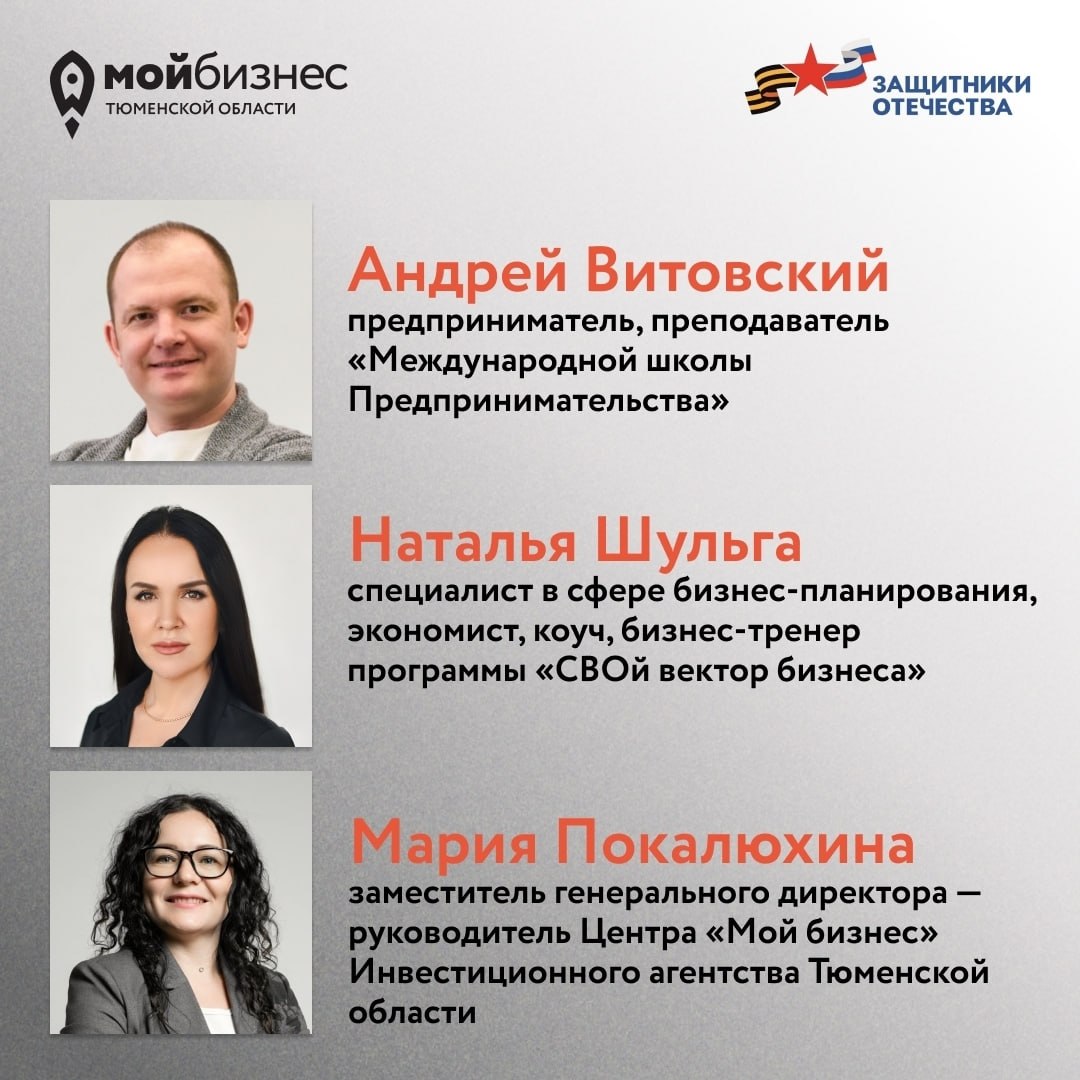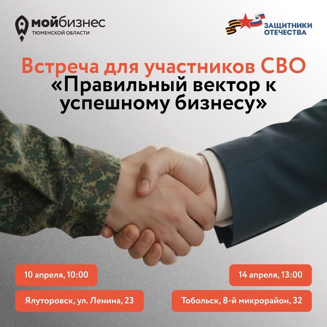 Центр «Мой бизнес» Инвестиционного агентства Тюменской области продолжает работу по проекту «СВОй вектор бизнеса», в рамках которого проводит серию встреч «Правильный вектор к успешному бизнесу» с участниками СВО и членами их семей. 14 апреля мероприятие пройдет в Тобольске.