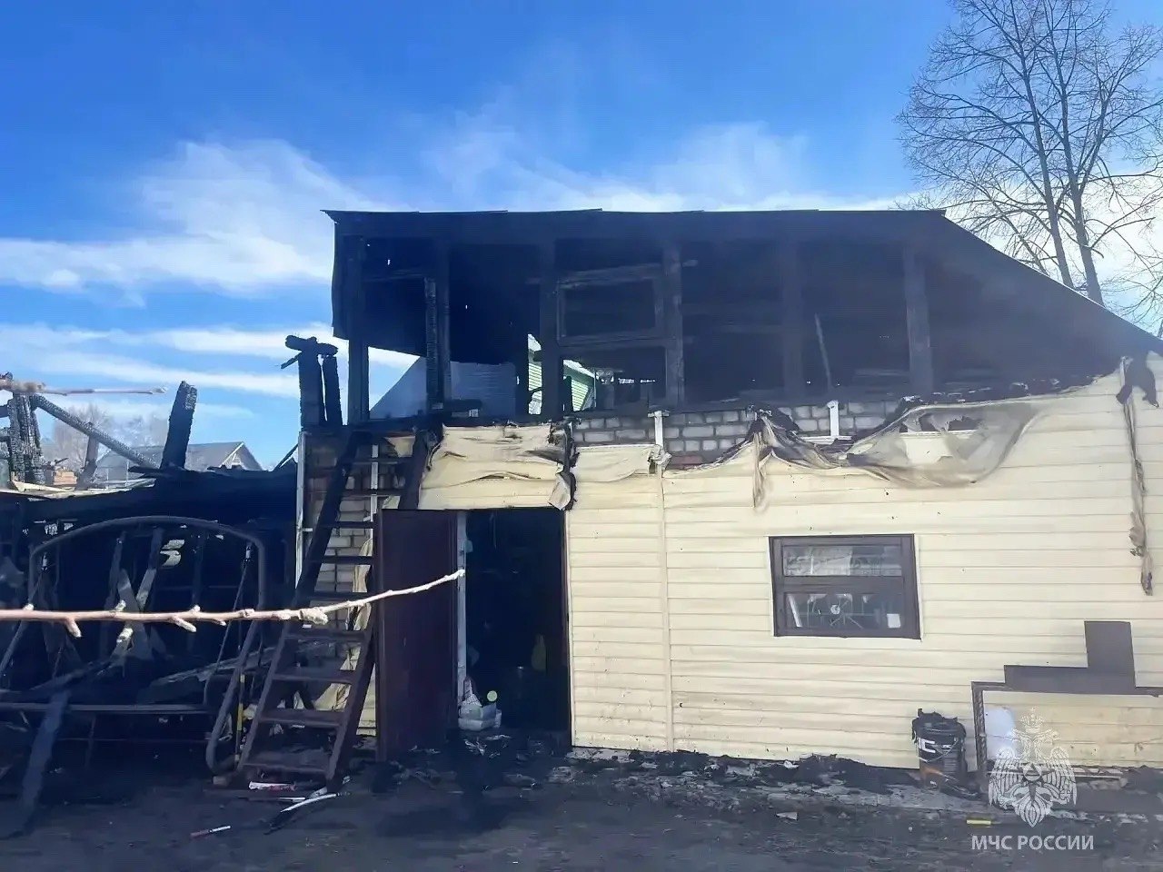 Сегодня около 14:00 на улице Мира, 3а в посёлке Боровский произошёл пожар в частном жилом доме и надворных постройках