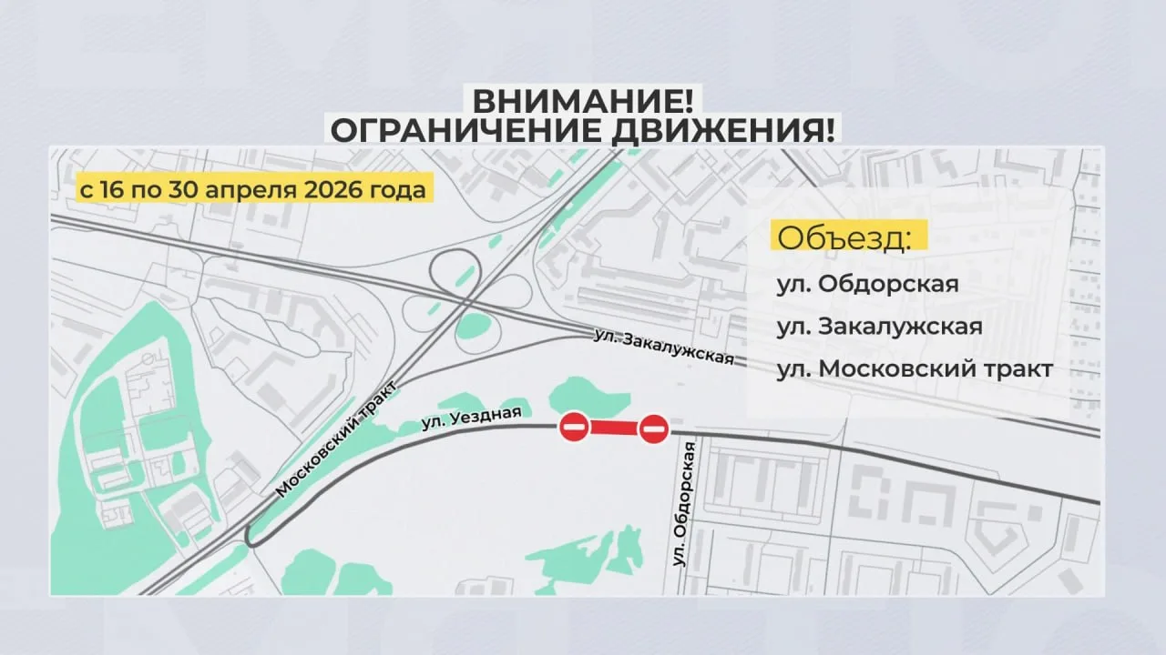 Причина - строительство тепломагистрали. Объехать ремонтируемый участок можно по Обдорской, Закалужской и Московскому тракту.