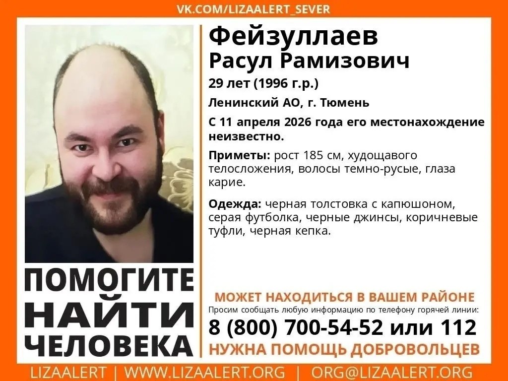 Пропал накануне Пасхи: в Тюмени ищут 29-летнего Расула Фейзуллаева