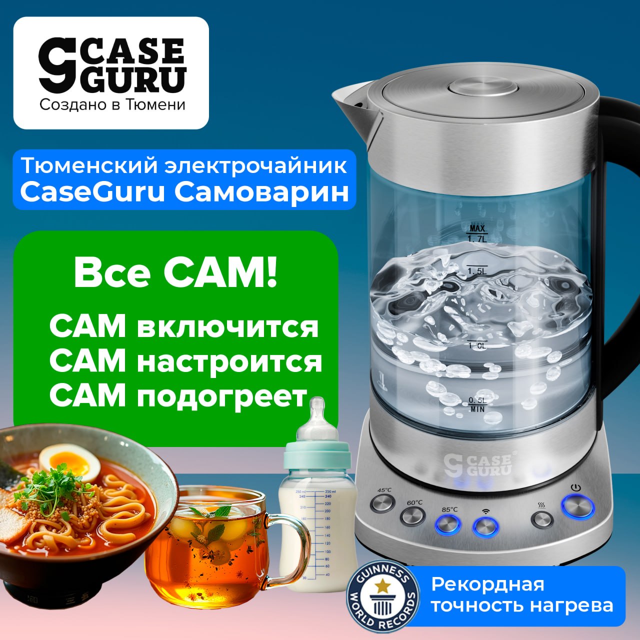 Тюменский умный чайник CaseGuru Самоварин быстро греет воду до заданной температуры: от 30 до 100 градусов — рекордная точность. Идеален для детских смесей и разных сортов чая, где важен каждый градус.