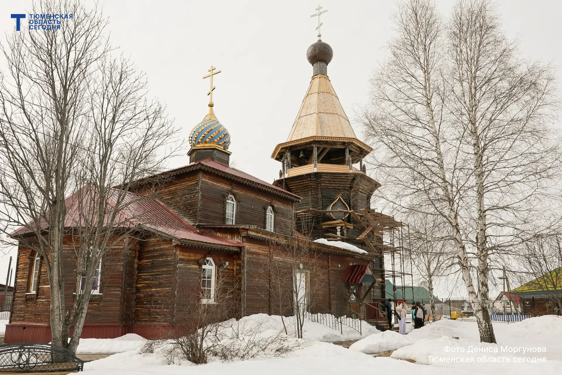 Но вера в селе не пропала. Люди собирались в обычном доме и ездили на службы в Тобольск. Только в конце 80-х там появилась официальная община. А уже в 90-х всем селом строили новый храм. За основу взяли северный деревянный собор — поэтому он напоминает знаменитую церковь Преображения Господня на острове Кижи.
