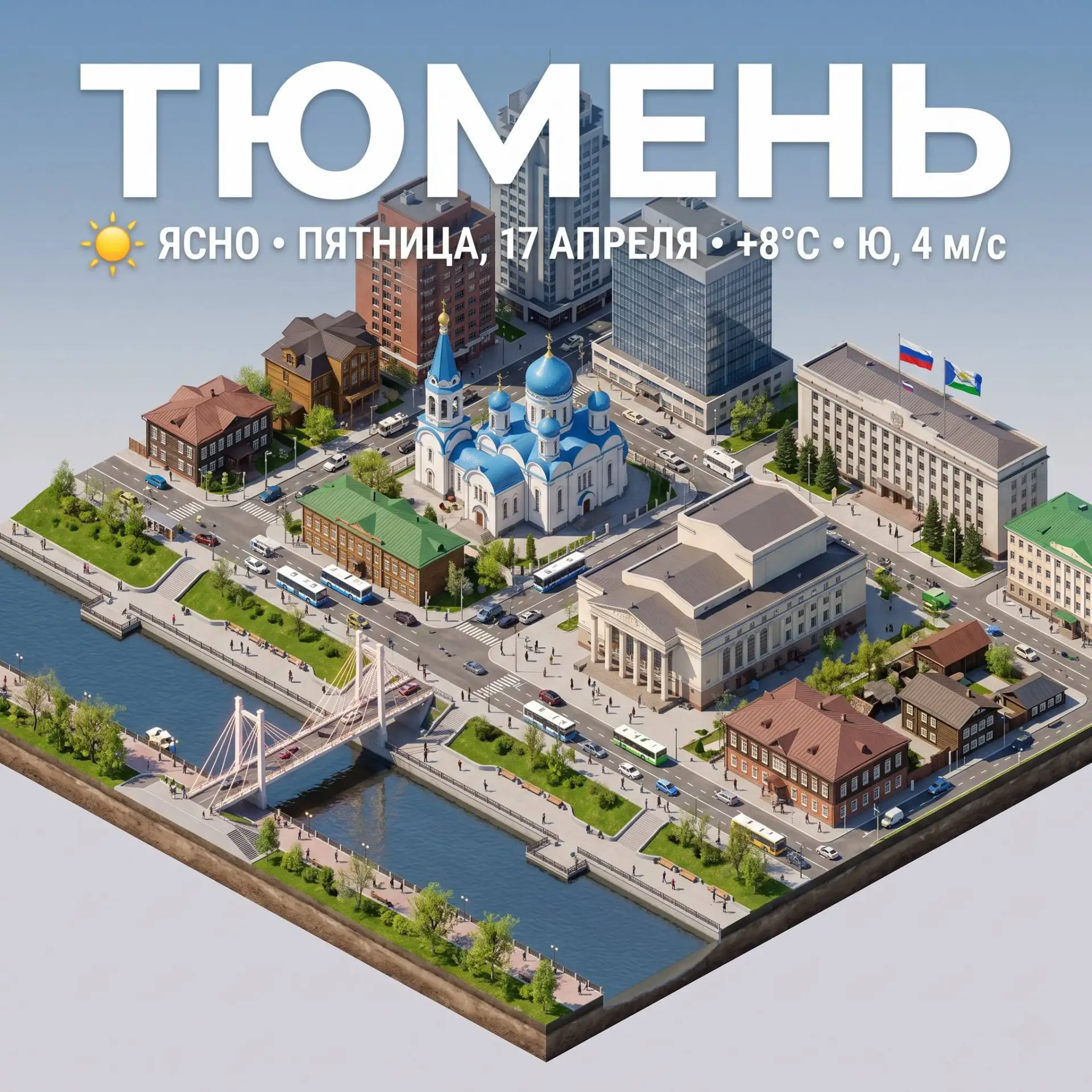Сегодня днем ясно, температура воздуха +8 °С. Южный ветер 5 м/с.