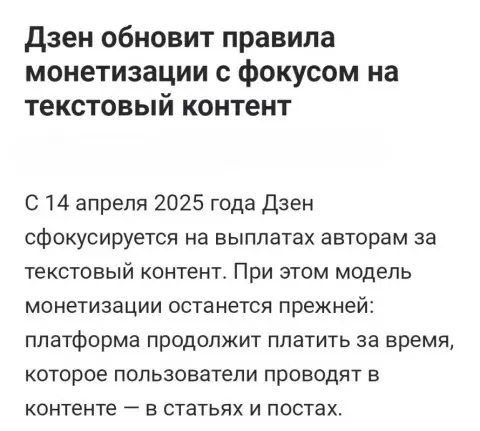 С 14 апреля текущего года платформа сосредоточилась исключительно на вознаграждении за статьи и посты, что заставляет авторов задуматься о целесообразности публикации видео. Эта ситуация вызывает беспокойство, так как просмотр видео обеспечивал более стабильный доход в сравнении с текстовым контентом.