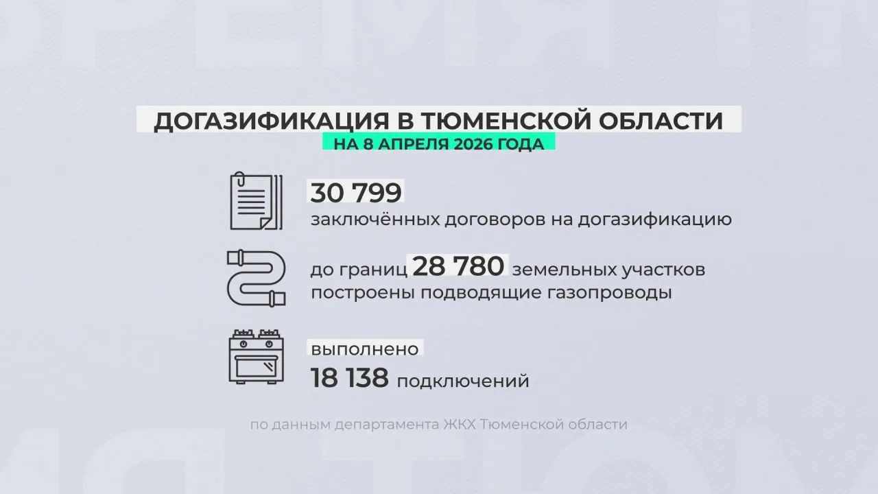 Заключено почти 31 тысяча договоров на догазификацию, до границ 28 тысяч земельных участков специалисты уже построили газопроводы. Две трети абонентов подключились и пользуются газом.