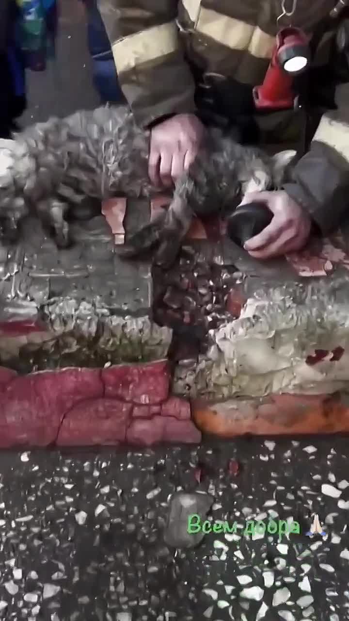 Сотрудник 14-й пожарно-спасательной части 32-го ПСО регионального ГУМЧС МЧС России Руслан Белоус вывел с верхних задымленных этажей женщину. После, огнеборец вынес на свежий воздух трех кошек. Двух из них пришлось откачивать.