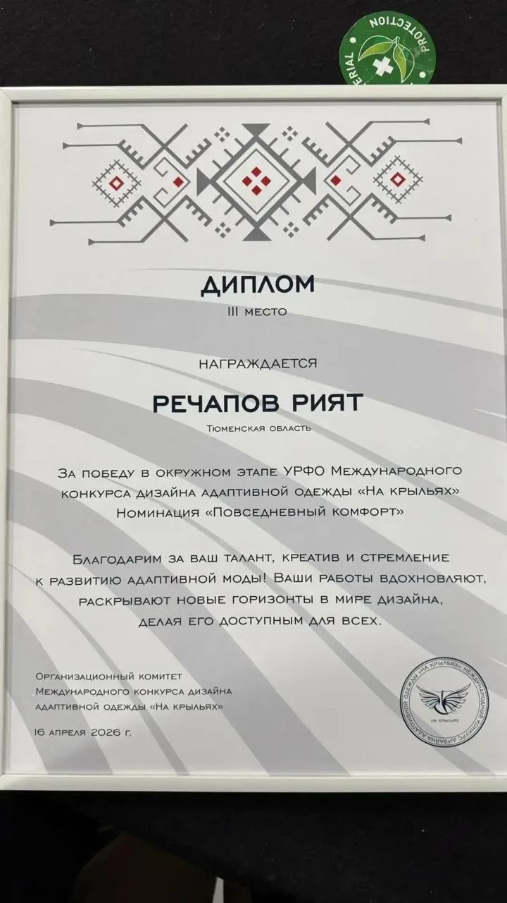 Тюменский студент стал призером конкурса дизайна адаптивной одежды "На крыльях"